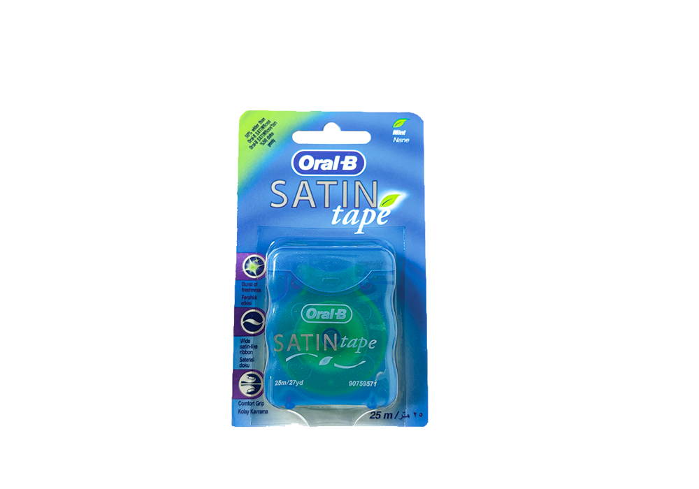 خيط الأسنان أورال بي ساتين تاب بنكهة النعناع يزيل بقايا الطعام والبلاك من بين الأسنان بلطف، مع إحساس منعش يدوم طويلًا.