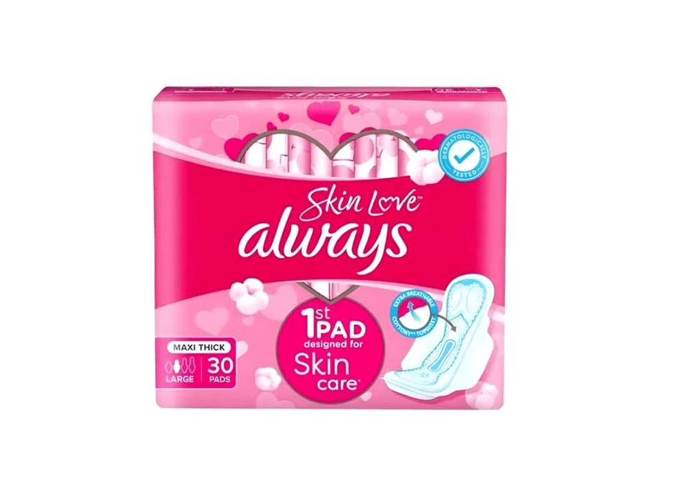 "فوط صحية أولويز ماكسي سميكة كبيرة" (Always Skin Love Maxi Thick Large Pads):