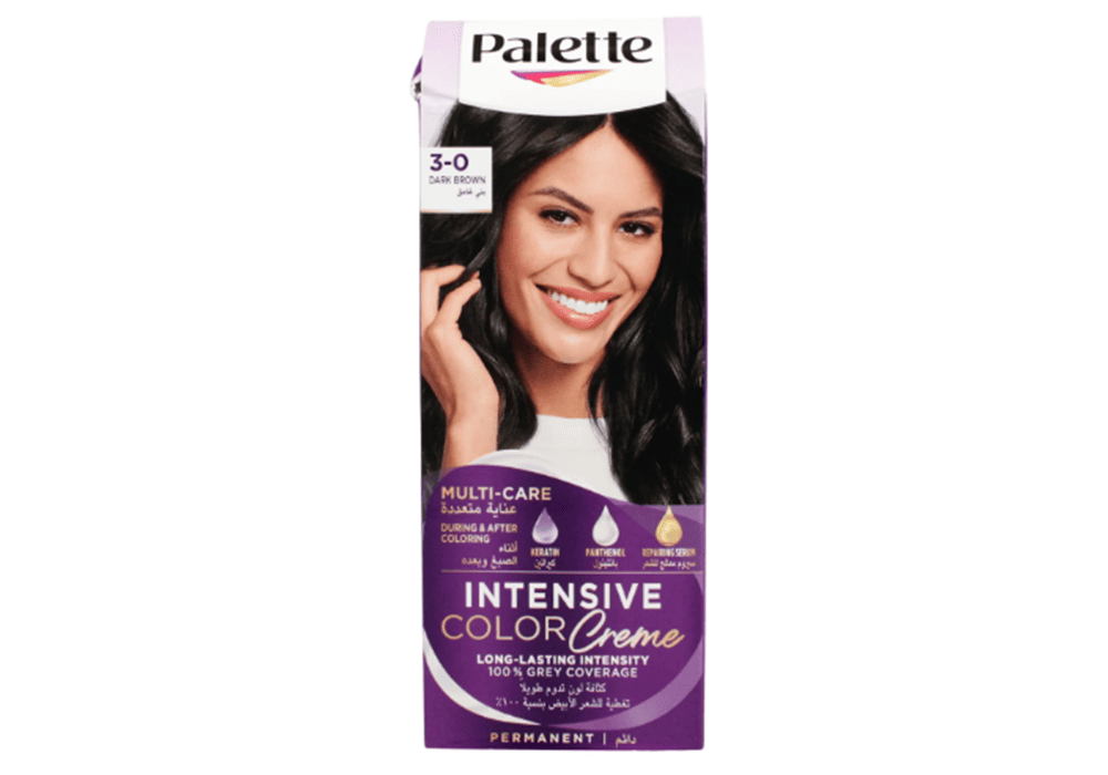 باليت انتنسف كولور كريم تمنحك لون بني غامق عميق ويدوم طويلاً مع تغطية كاملة للشعر الأبيض.