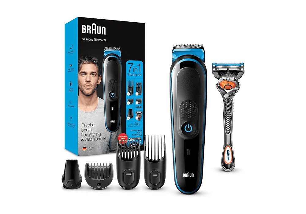 ماكينة الحلاقة من براون 7 في 1 تتيح لك العناية الكاملة بمظهرك من الرأس حتى الذقن، تأتي بمجموعة من الملحقات لتشذيب اللحية، قص الشعر، وتنظيف دقيق للمناطق الحساسة، بتقنية ألمانية عالية الجودة.