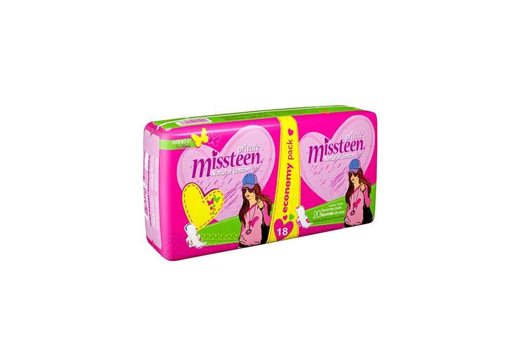 صُممت خصيصًا لتلبية احتياجات الفتيات في سن المراهقة، فوط برايفت ميستين (Private Missteen) الصحية الرفيعة جداً، المزودة بالأجنحة، بحجم عادي. توفر حماية موثوقة خلال الأيام العادية من الدورة، مع ملمس القطن الطبيعي ونحافة فائقة تضمن لكِ شعورًا بالحرية والراحة والثقة التامة. عبوة اقتصادية تحتوي على 20 قطعة لضمان استعدادكِ دائمًا.