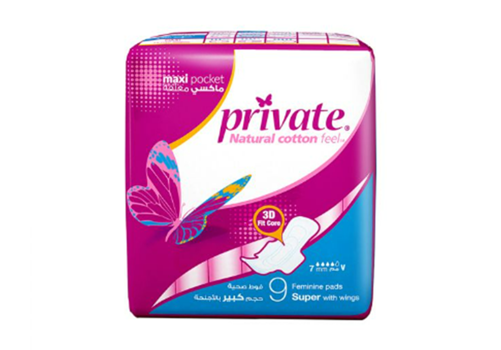 فوط صحية برايفت ماكسي بوكيت سوبر بالأجنحة - 9 قطع | Private Feminine Pads