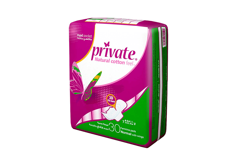 "برايفت ماكسي فوط صحية عادية بالأجنحة" (Private Maxi Regular Sanitary Napkins with Wings):