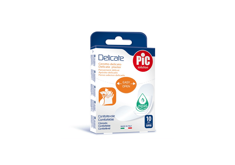لاصقات Pic AquaBloc بتصميم إيطالي فائق النحافة، مقاومة للماء والجراثيم، مناسبة للجروح الصغيرة والخدوش.