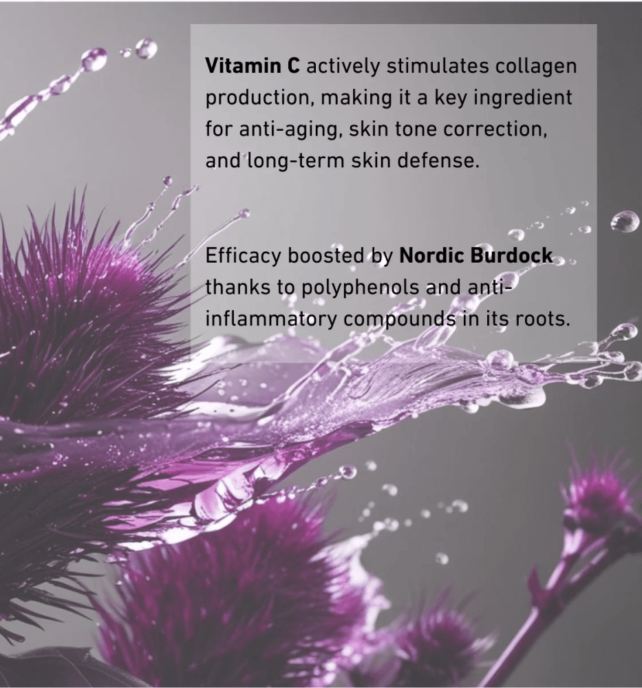 سيروم مضاد للأكسدة عالي التركيز، يحتوي على فيتامين C بنسبة 15% لتعزيز إشراقة البشرة وتحفيز إنتاج الكولاجين، مدعوم بحمض الفيروليك، الأربوتين وخلاصة الأرقطيون لتفتيح التصبغات، تقوية الحاجز الواقي، وتوحيد لون البشرة بفعالية وآمان.