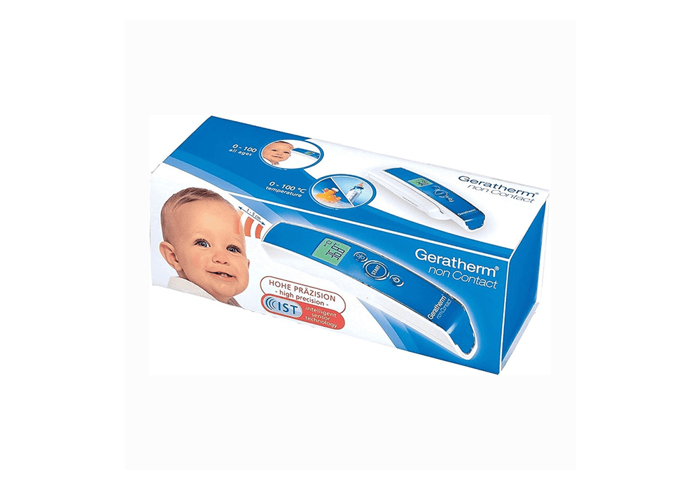 جهاز جيراثيرم Non Contact يوفر قياس دقيق لحرارة الجسم من الجبهة بدون تلامس، مثالي للأطفال حديثي الولادة والبالغين، سهل الاستخدام مع شاشة رقمية ملونة لعرض النتيجة بوضوح.