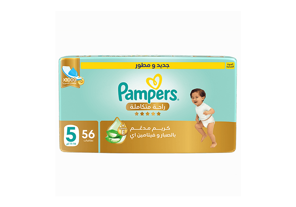 حفاضات بامبرز رقم خمسة عناية مميزة توفر حماية فعالة وراحة تدوم طويلاً بفضل طبقة امتصاص فائقة وتصميم مريح للأطفال بوزن 11 إلى 16 كيلوجرام.