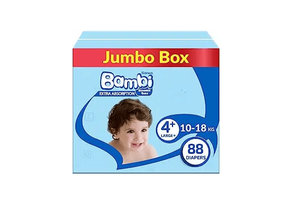 حفاضات بامبي جامبو بوكس مقاس 4+ (88 حفاضة)