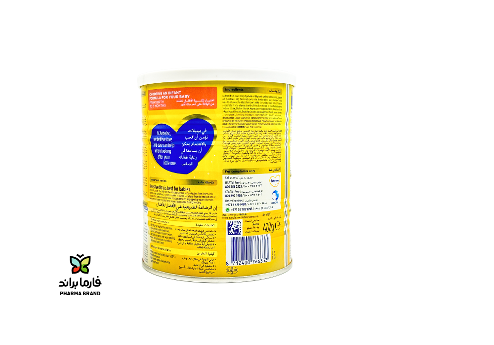 يُحضر الحليب باستخدام مكيال مرفق، وتُضاف الكمية الموصى بها إلى ماء مغلي ومبرد، ويُرج جيدًا حتى يذوب تمامًا. يُستخدم خلال ساعة من التحضير ولا يُعاد تسخينه.