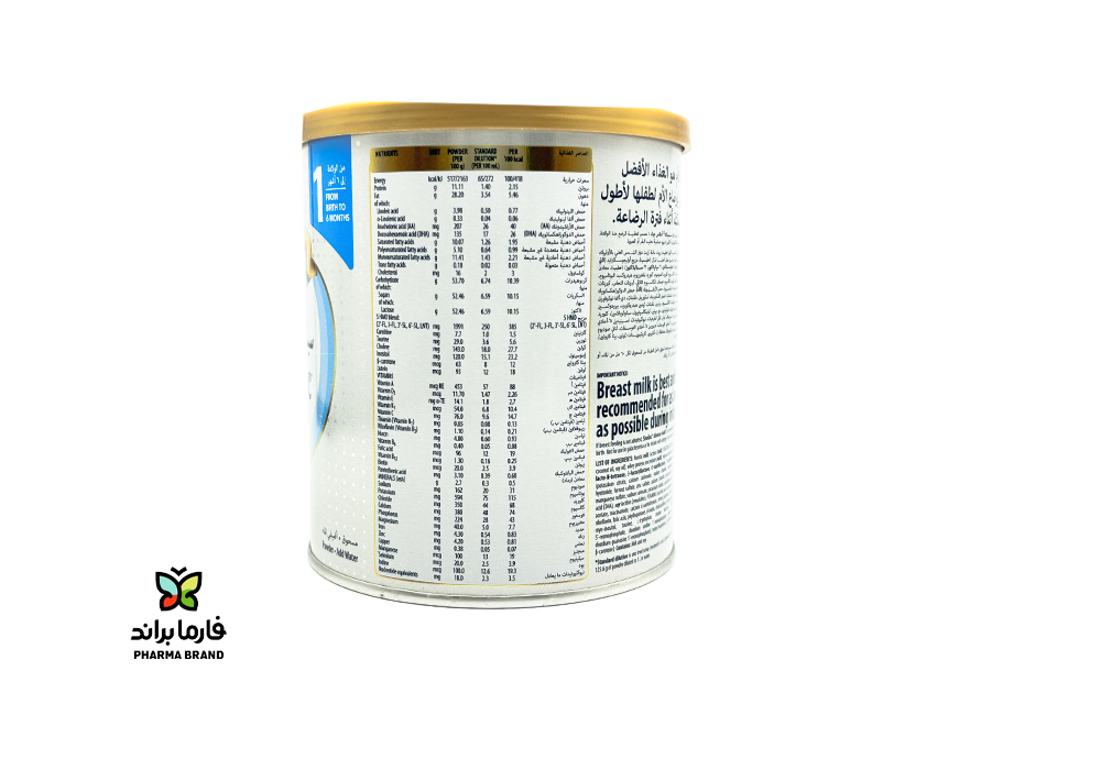 حليب مجفف للرضع، المرحلة الأولى، مصمم خصيصًا لتلبية الاحتياجات الغذائية للرضع من الولادة وحتى 6 أشهر. تركيبة متقدمة مدعمة بعناصر غذائية أساسية لدعم النمو والتطور الصحي للطفل، بالإضافة إلى مكونات مميزة في تركيبة "جولد".