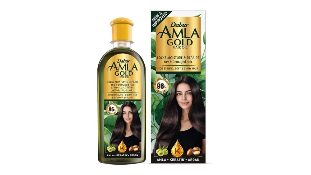 زيت دابر أملا الذهبي بتركيبة غنية يمنح الشعر تغذية مكثفة ويعيد إليه حيويته ولمعانه الطبيعي، يساعد على تقوية الشعر وتقليل تساقطه مع تركه ناعمًا وسهل التصفيف.
