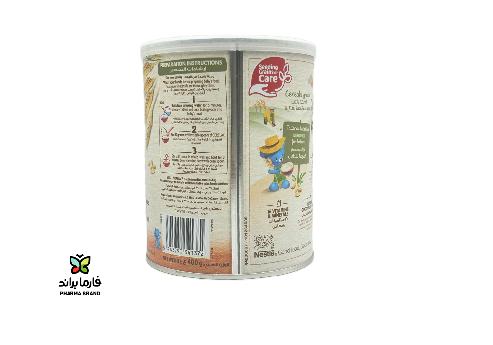هذا المنتج عبارة عن حبوب أطفال فورية تحتوي على القمح والفواكه ومسحوق الحليب، ومصممة لتكون غذاءً تكميليًا للرضع الذين تزيد أعمارهم عن 6 أشهر.