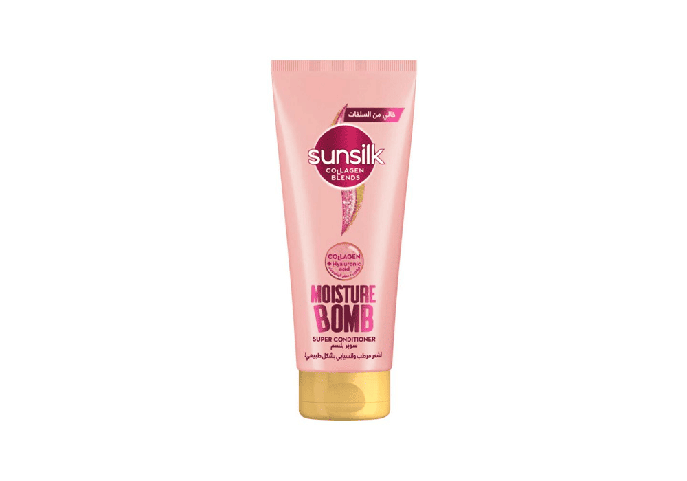 بلسم "صانسيلك كولاجين بلندز مويستشر بومب سوبر كونديشنر" هو بلسم فائق للعناية بالشعر مصمم خصيصًا لترطيب الشعر الجاف والخشن بعمق ومنحه نعومة فائقة ولمعاناً. يأتي هذا البلسم بتركيبة غنية بالكولاجين وحمض الهيالورونيك، وهما مكونان معروفان بقدرتهما على جذب الرطوبة والاحتفاظ بها داخل ألياف الشعر، مما يمنح الشعر ترطيباً مكثفاً يدوم طويلاً ويجعله أكثر صحة وحيوية.
