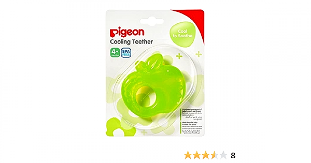 عضاضة تبريد من بيجون مصممة بشكل تفاحة لتخفيف آلام التسنين بلطف، آمنة وخالية من BPA، مناسبة للأطفال من عمر 4 شهور فأكثر.