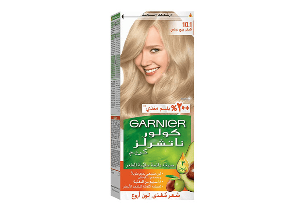 غارنييه كولور ناتشرلز تمنحك لون أشقر بيج رمادي (10.1) مع تغذية عميقة للشعر ولمعان صحي يدوم طويلاً.