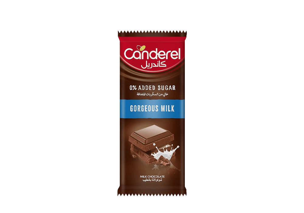 كاندريل شوكولاتة بالحليب 100 جم، بطعم غني وكريمي، خالية من السكر المضاف، مثالية كخيار صحي للتحلية اليومية أو للأنظمة منخفضة السكر.