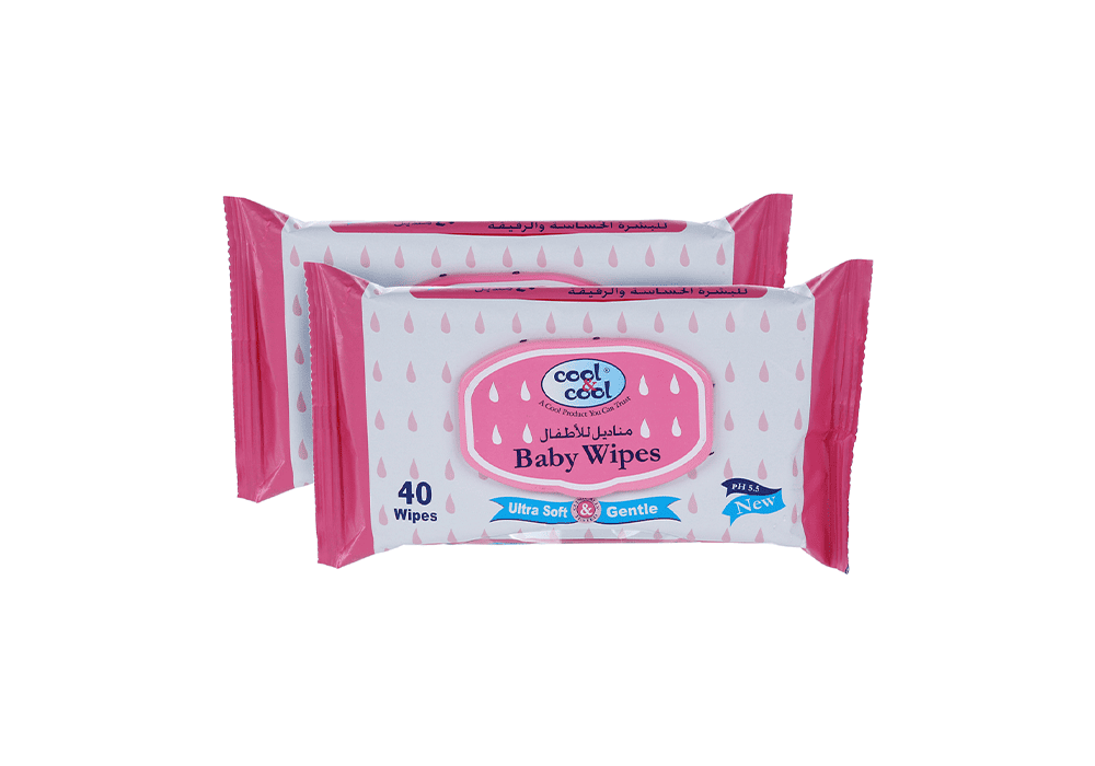 مناديل مبللة ناعمة للأطفال بتركيبة لطيفة، تنظف بلطف وفعالية دون التسبب بجفاف أو تهيج، بعبوتين عمليتين تحتوي كل منهما على 40 منديل.