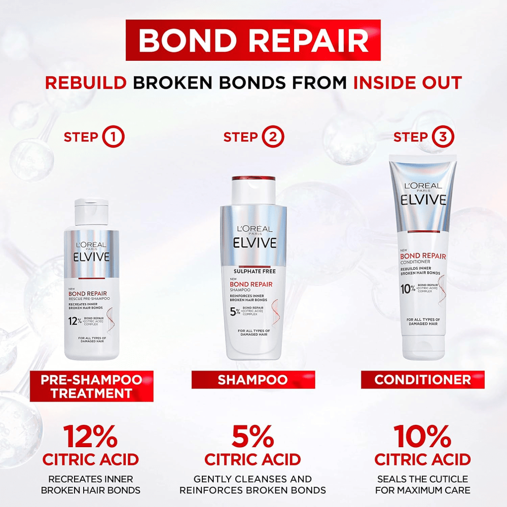 شامبو لوريال الفيف بوند ريبير 200مل يعالج الشعر التالف بعمق، ويعيد بنية الشعر من الداخل بتركيبة حمض الستريك، خالٍ من السلفات، لطيف على الشعر ويمنحه نعومة ولمعان صحي.