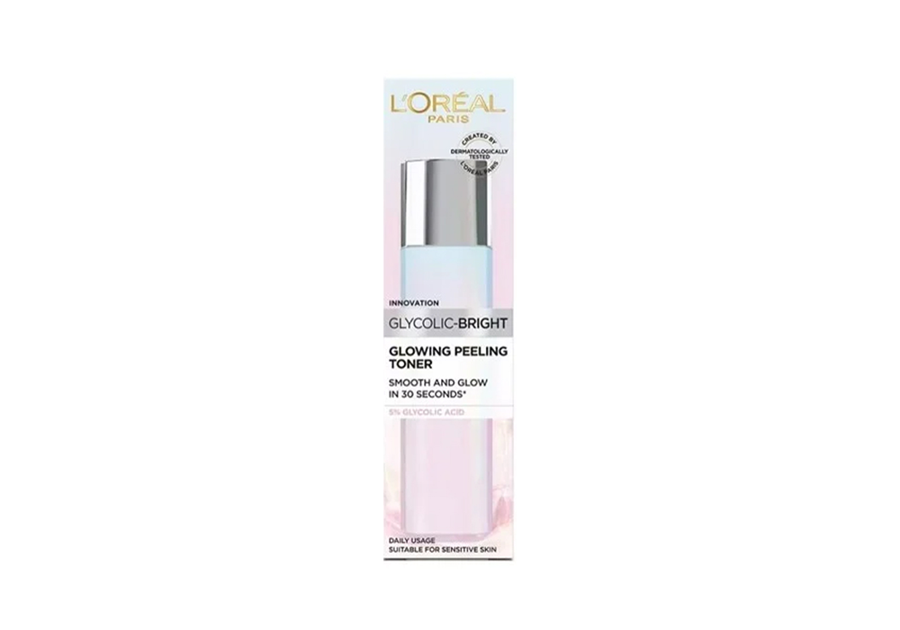 تونر لوريال 128 مل بحمض الجليكوليك 5%، يقشر بلطف، يجدد البشرة ويمنحها إشراقة صحية، مثالي لتوحيد اللون وتحسين الملمس.