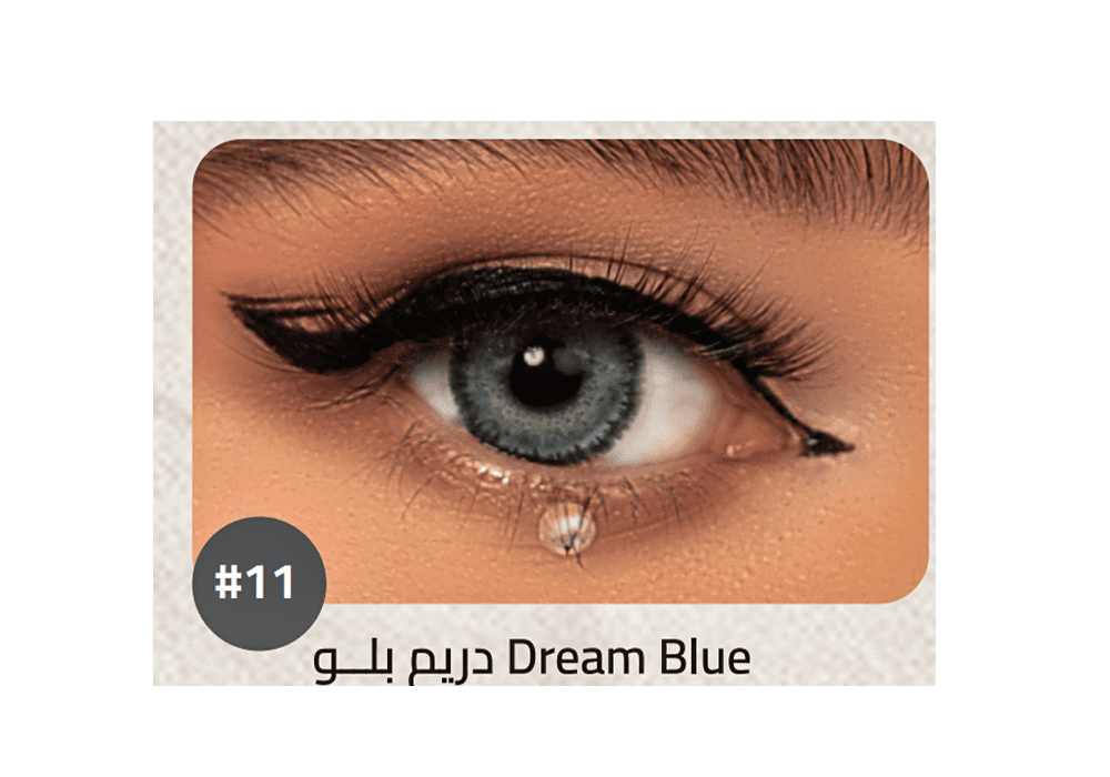 استمتعي بإطلالة جذابة مع عدسات ايكو DREAM BLUE رقم 11، التي تمنحك لونًا أزرقًا رماديًا راقيًا يضفي على عينيك إشراقة آسرة وإحساسًا بالنعومة والرقي.
