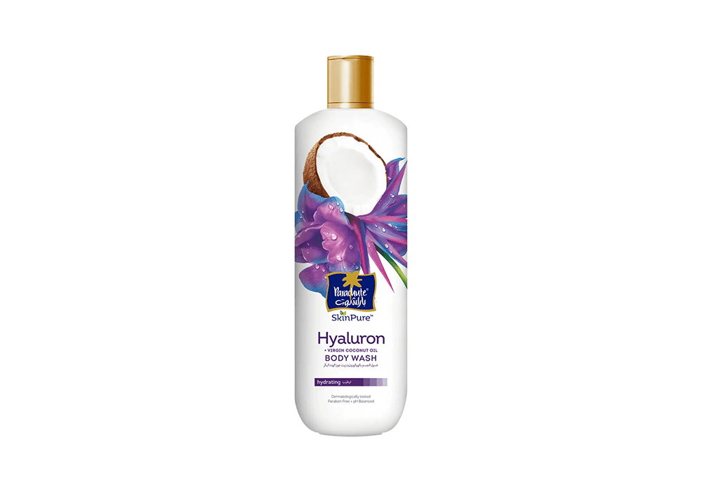 غسول الجسم باراشوت بتركيبة زيت جوز الهند البكر وحمض الهيالورونيك يمنحك تنظيفاً لطيفاً مع ترطيب عميق يدوم طويلاً، ليترك بشرتك ناعمة ونضرة.