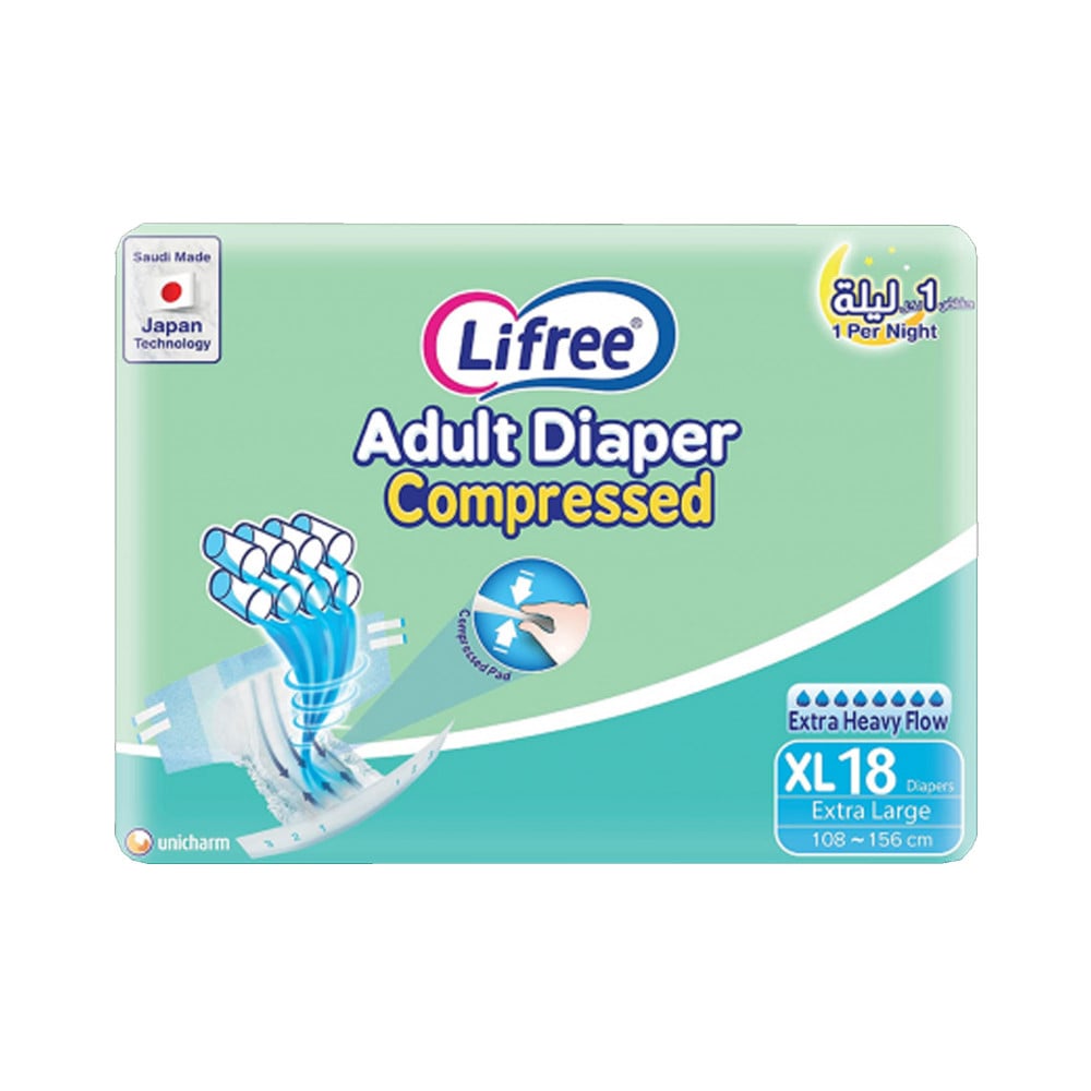 Lifree Tape Diaper Compressed, Extra Large, 18 Diapers: