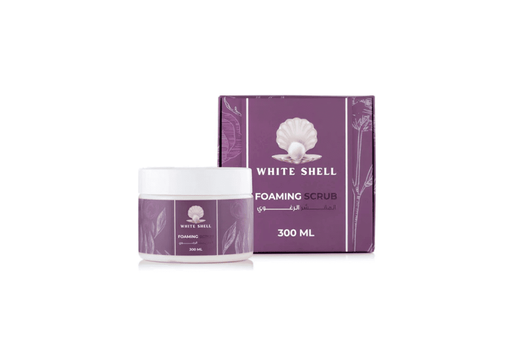 وايت شيل مقشر رغوي يساعد على تنظيف البشرة بعمق مع إزالة الشوائب والجلد الميت لمنحك بشرة ناعمة ومنتعشة.