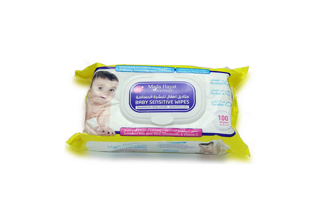 مناديل مدى حياة للأطفال للبشرة الحساسة بتركيبة غنية بالألوفيرا، البابونج، وفيتامين E، مصممة خصيصًا لتنظيف وترطيب بشرة الأطفال بلطف مع حماية فائقة وخالية من العطور والكحول والبارابين.